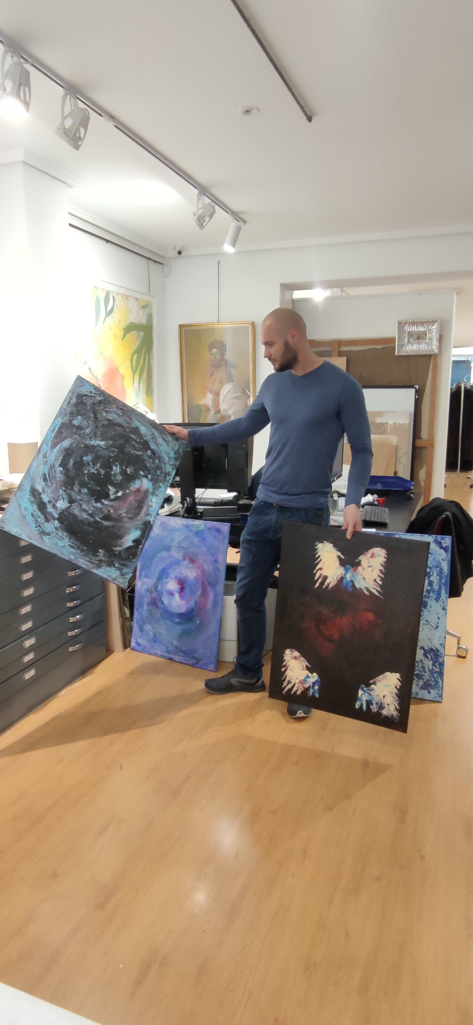 ARTIST'S WORKS ITS A FRUITS OF AN INSPIRATION. Current starting point of a certain chronology of the PRESTIGIO D.S COLLECTION The pictorial works draw inspired by a baroque environment. Prestige Collection Painting for people with character and imagination. Art that transmits life and passion. It is an endless field to discover and observe deep inside the painting. In all pictures there are Quotations from Ancient books and religions in the Titles. I propose a new Different Reality.
